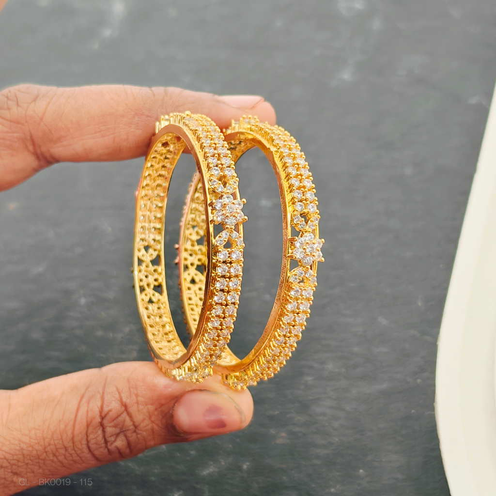 - Featuring a luxurious gold finish, the AD Floral designer with white stones - Kids Bangles come as a set of four exquisite pieces.