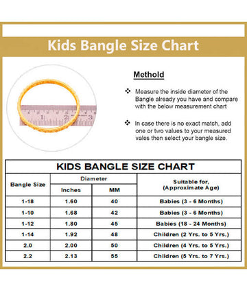 Size Reference : Approximate age is mentioned for reference purposes only. Please measure the size of your current bangle using the Kids Bangles size chart.