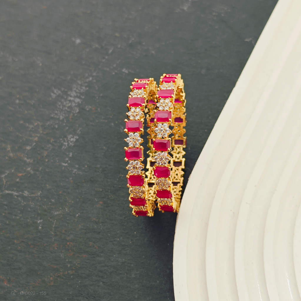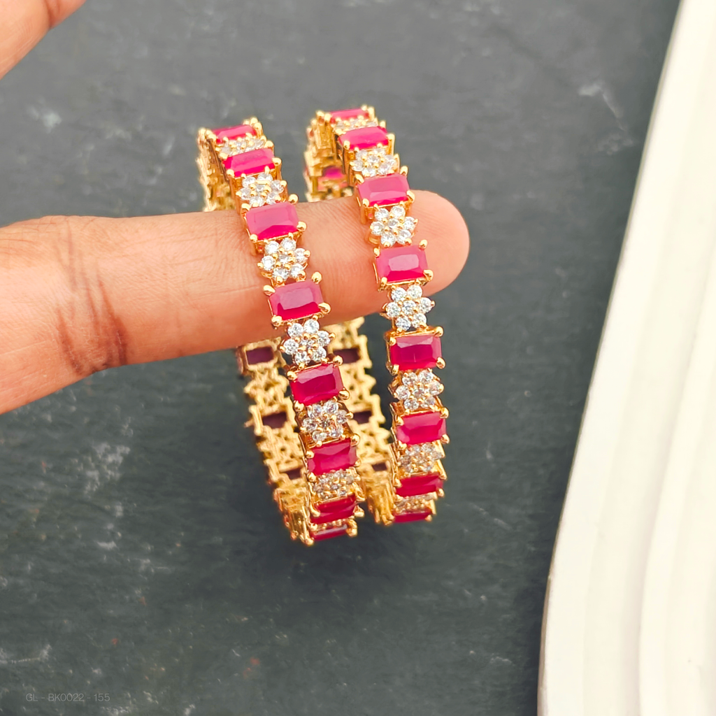 - Featuring a luxurious gold finish, the AD Floral designer with white and pink stones - Kids Bangles come as a set of four exquisite pieces.