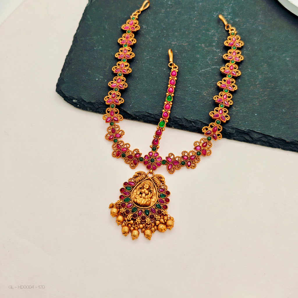 - Expertly crafted 3 line Maang Tikka with an antique matt gold finish