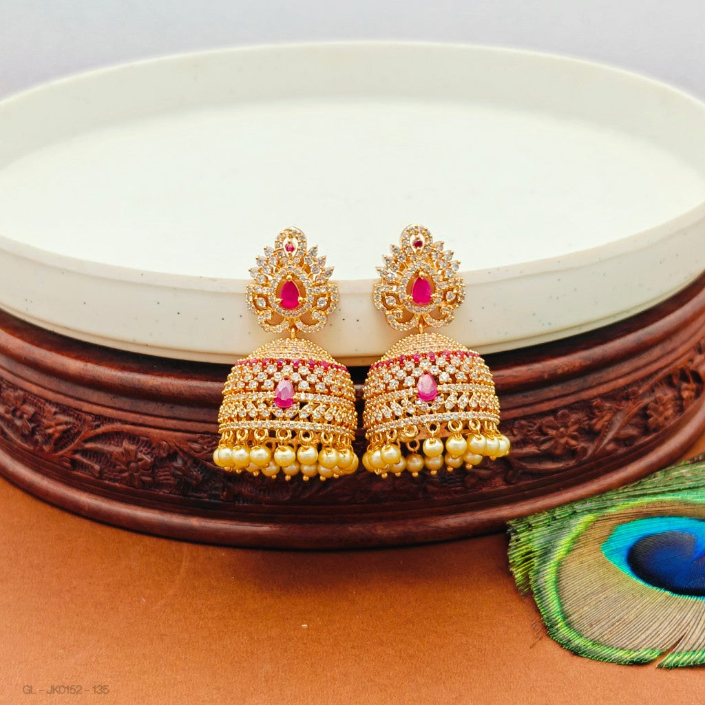 Micro gold AD Ruby and emerald stone pearl jhumkas