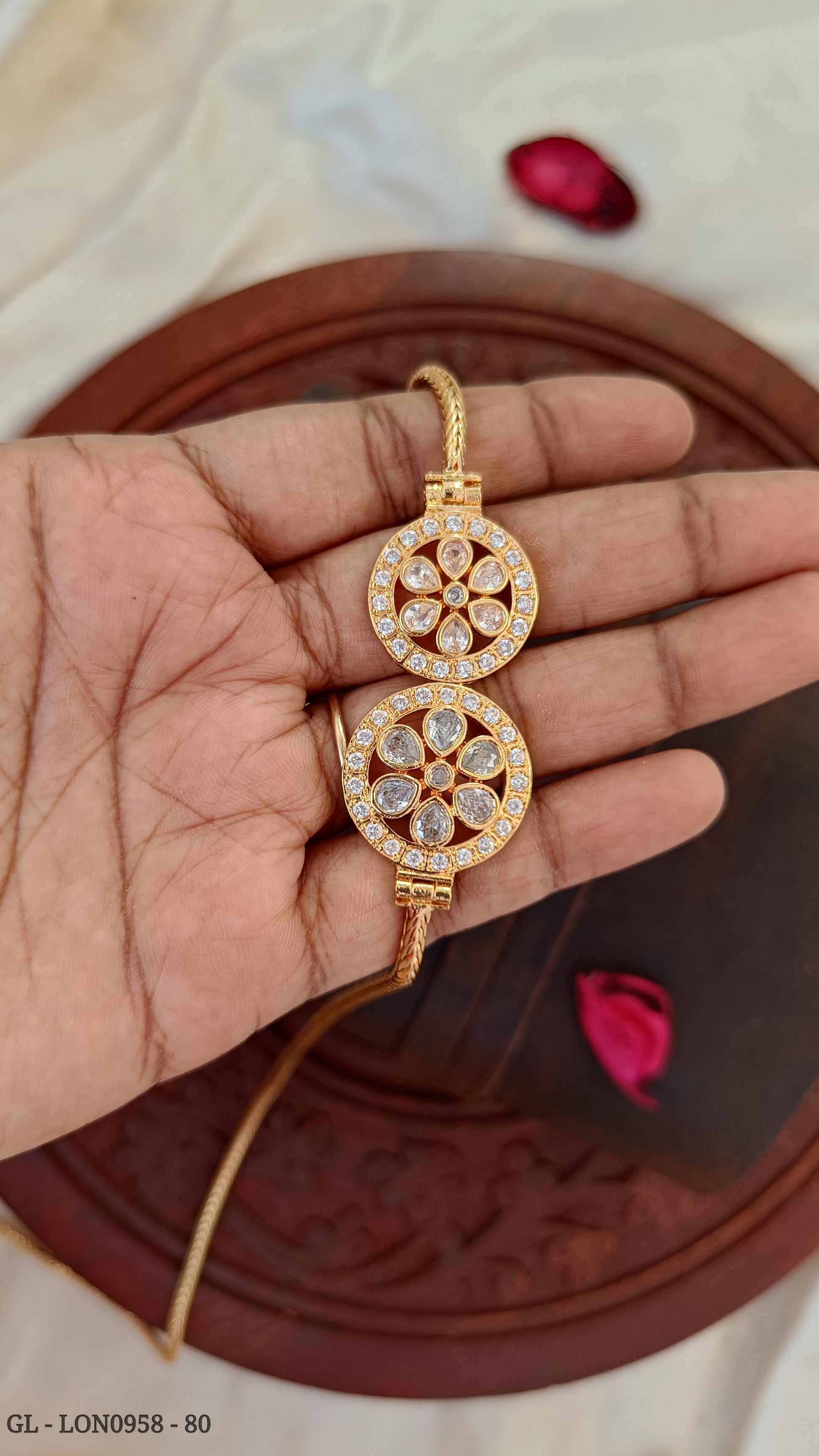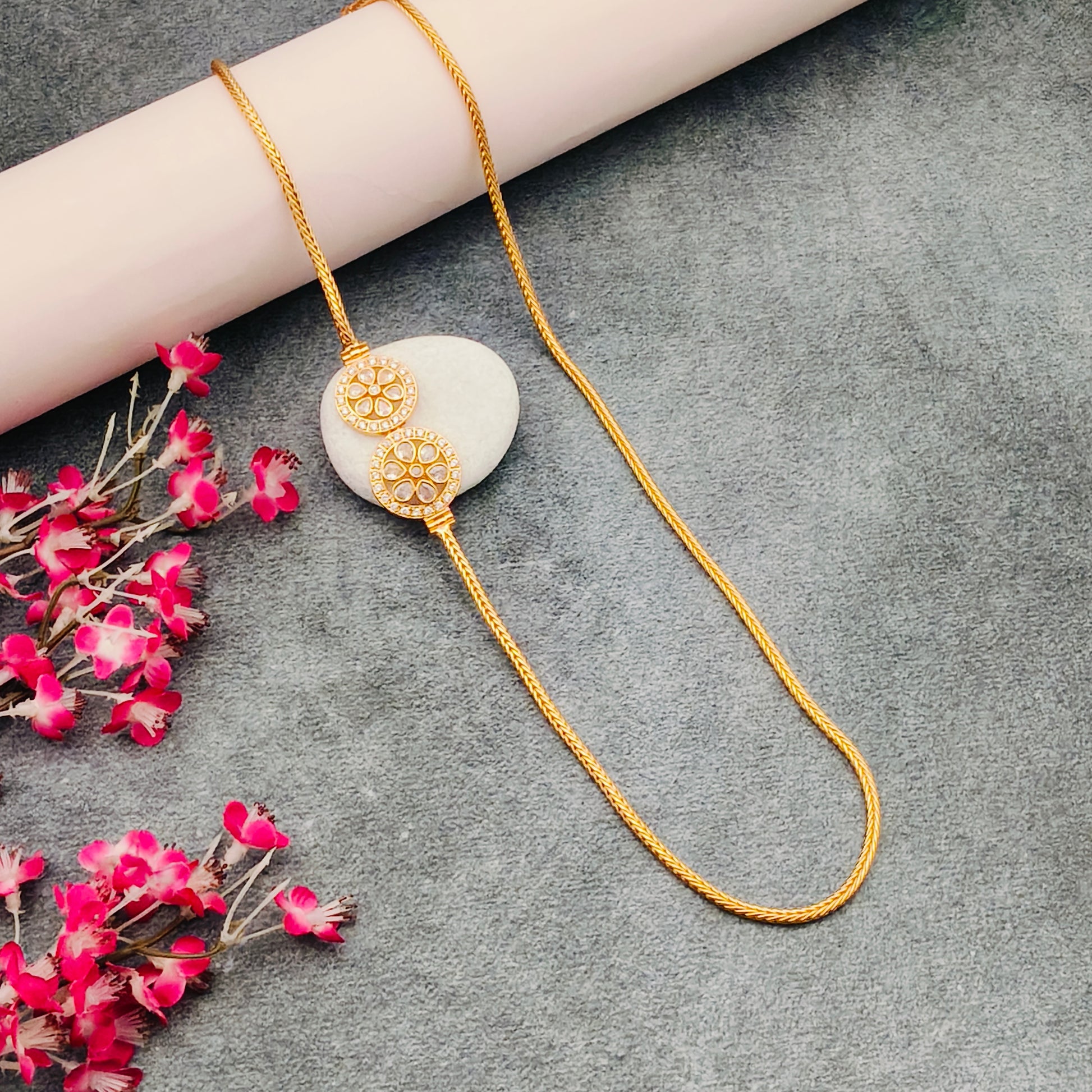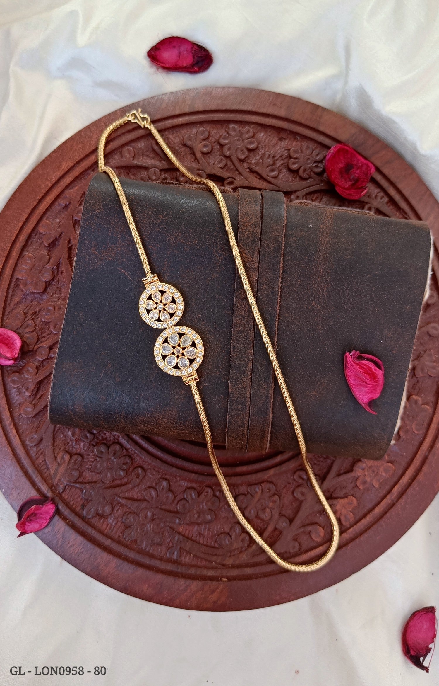 - Micro Gold Plated AD Stones Circular Flower Pendant Mogappu Chain