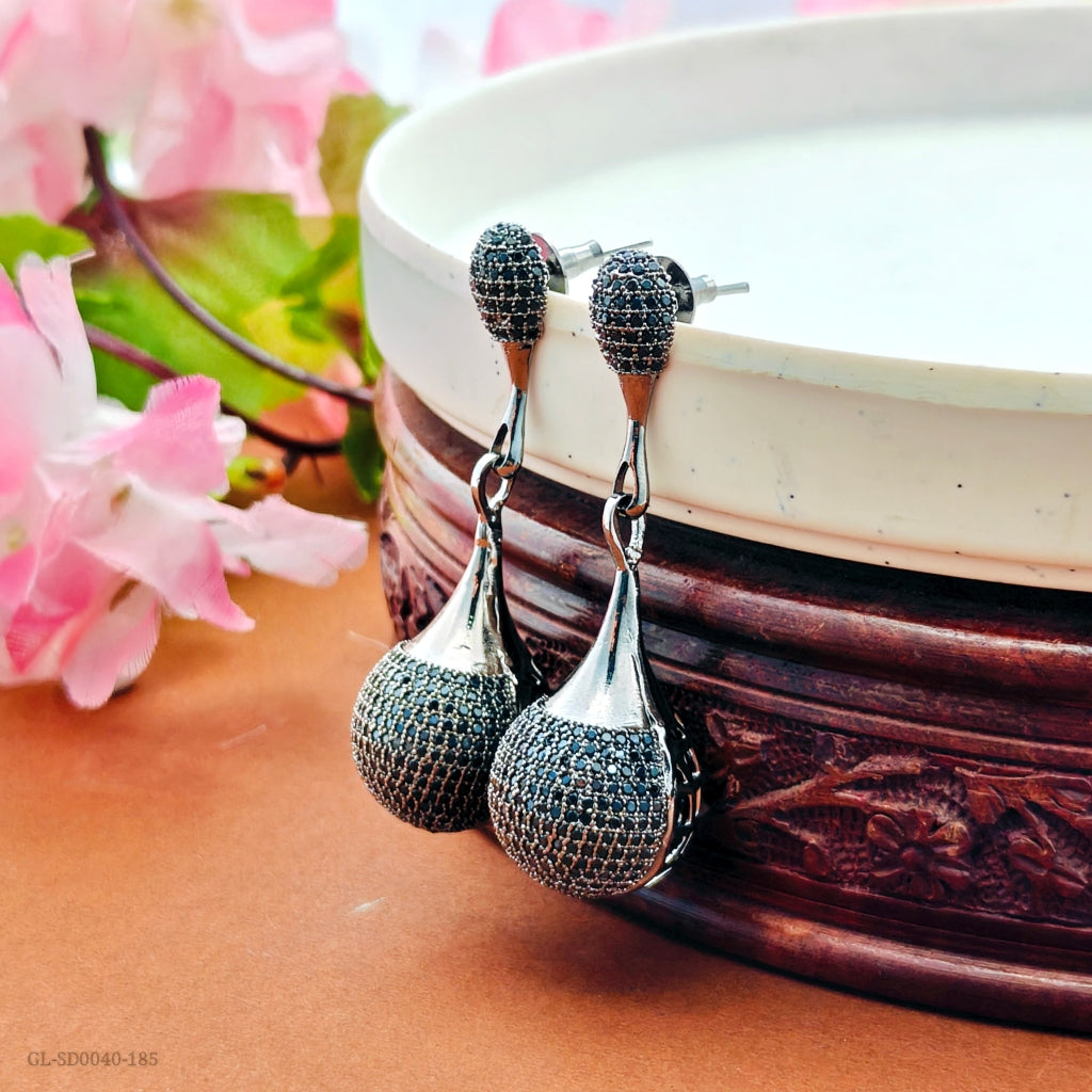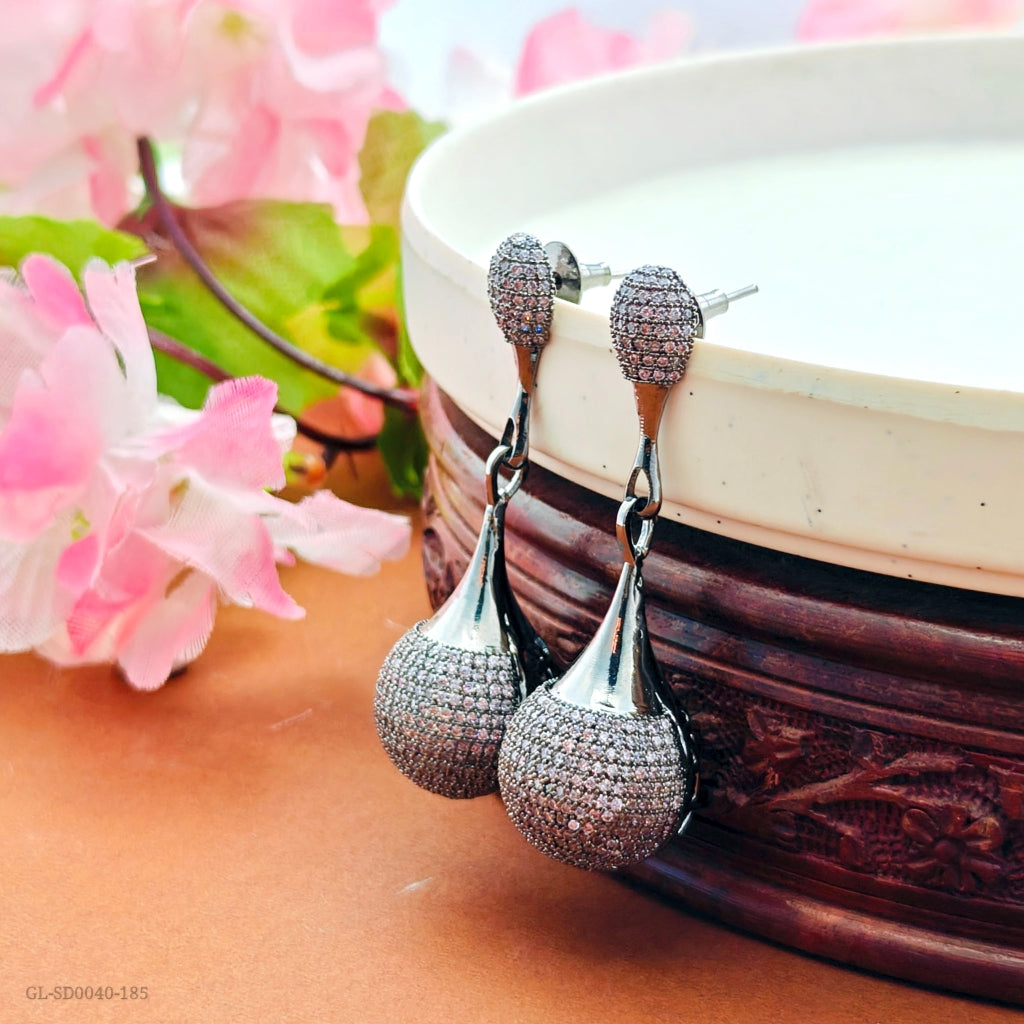 - Party wear glam Cz stone long dangling earrings
