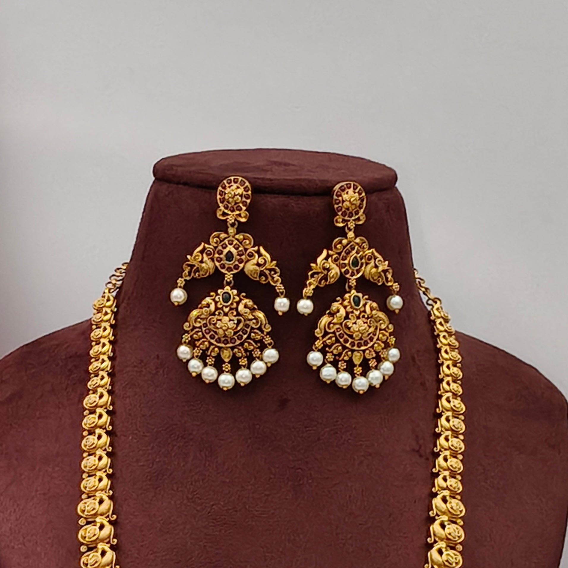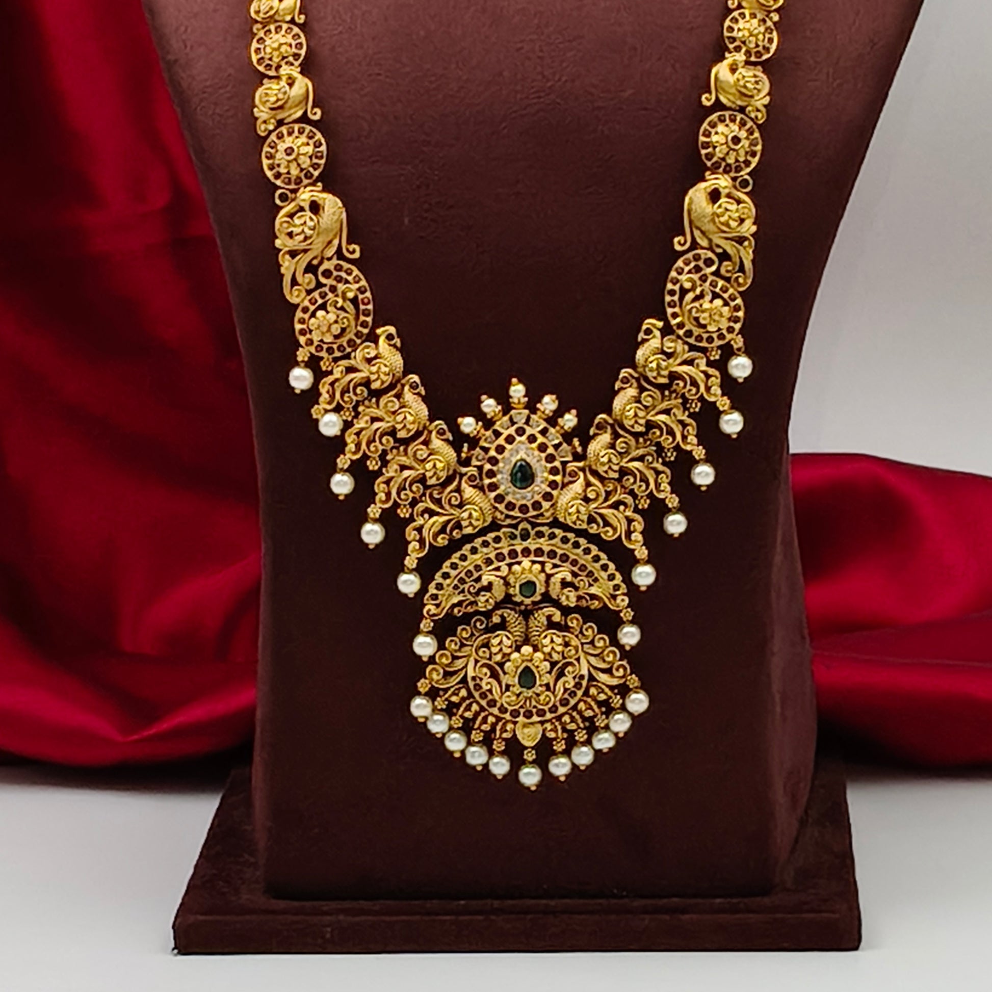 Nakshi Peacock Floral Long Necklace