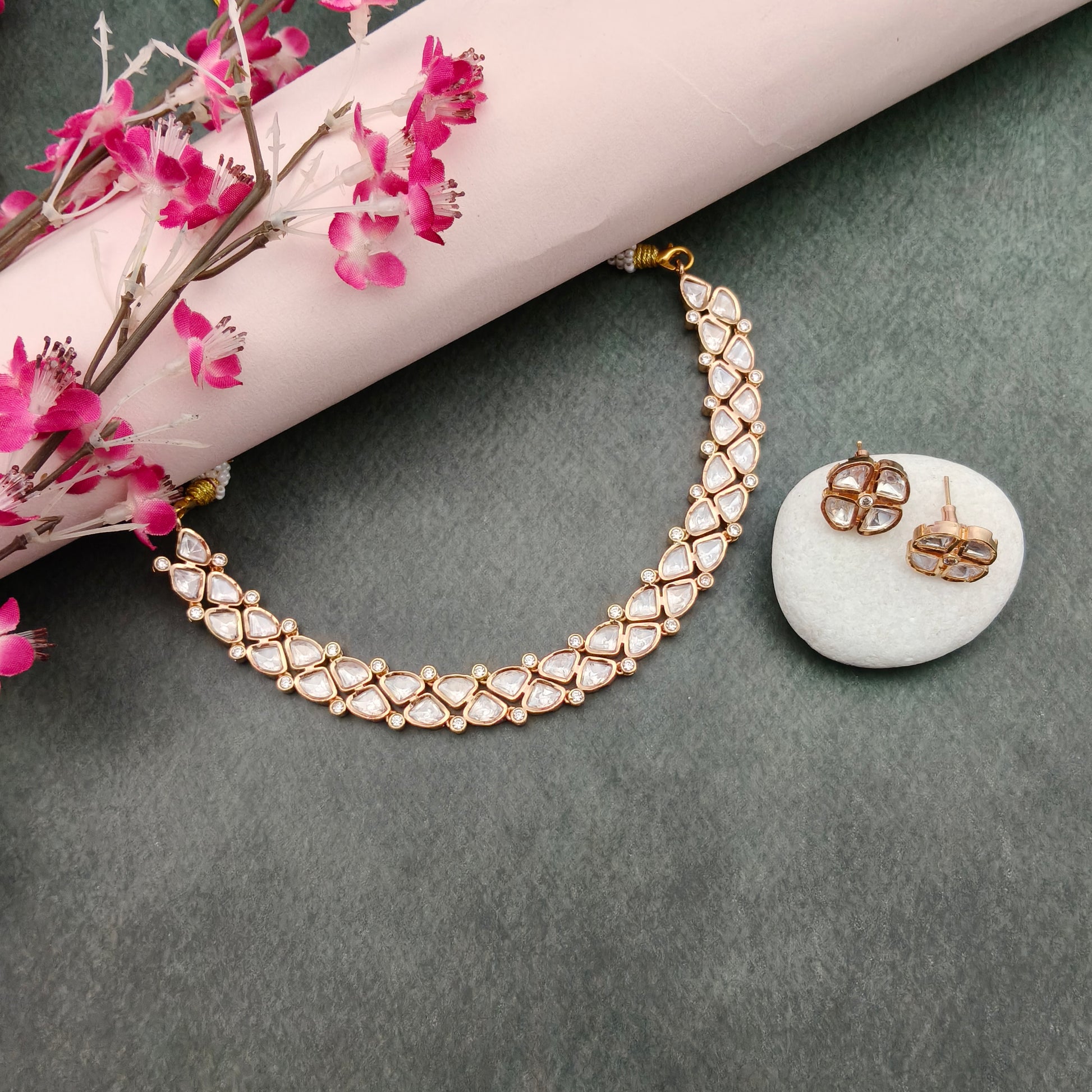 Polki Kundan Cz sequence Necklace Set