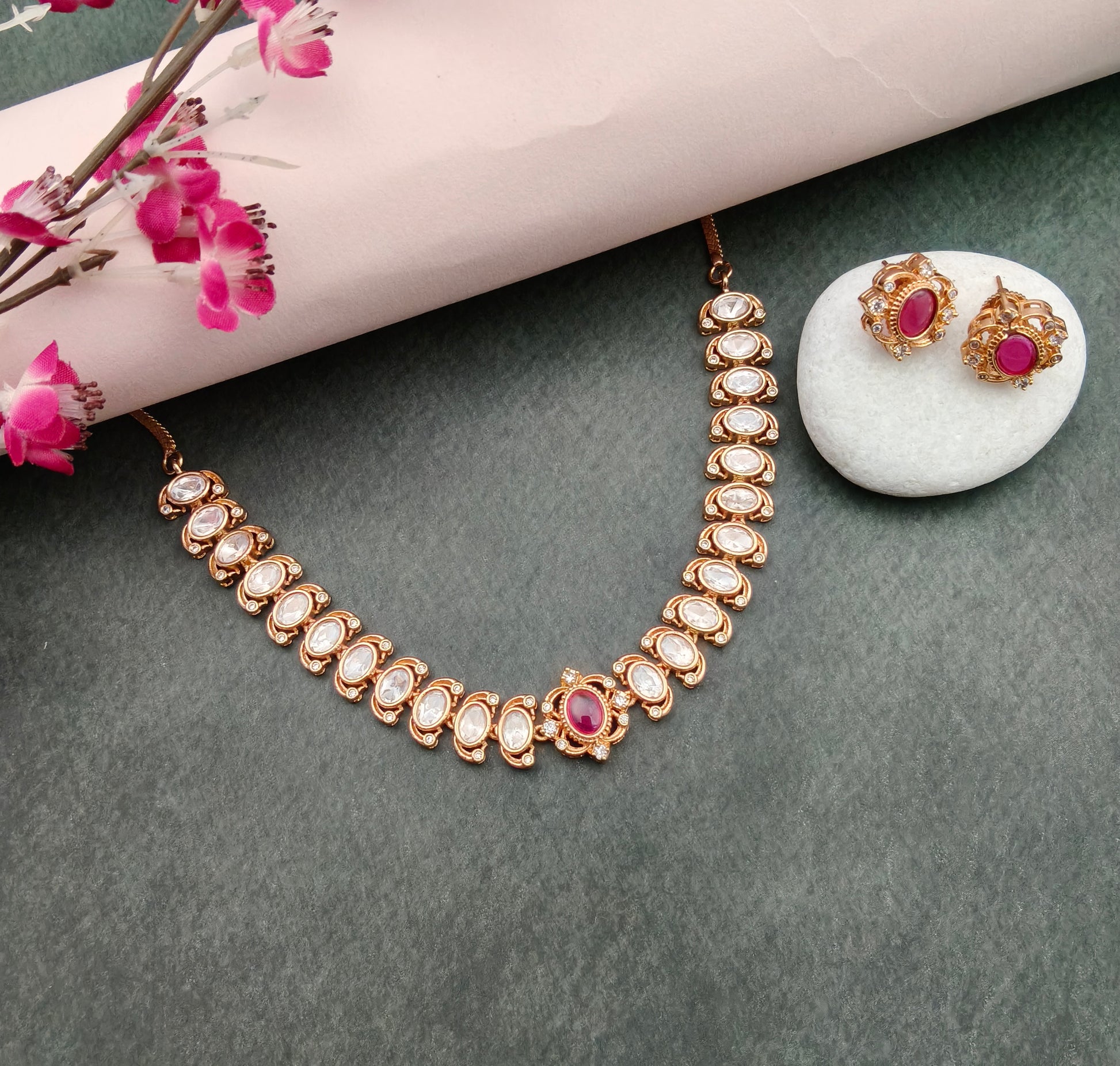 Polki Kundan golden ruby necklace