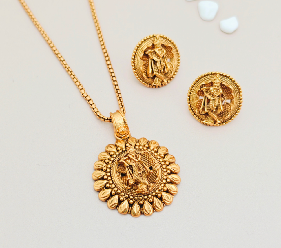 Radhe Krishna Golden Locket set