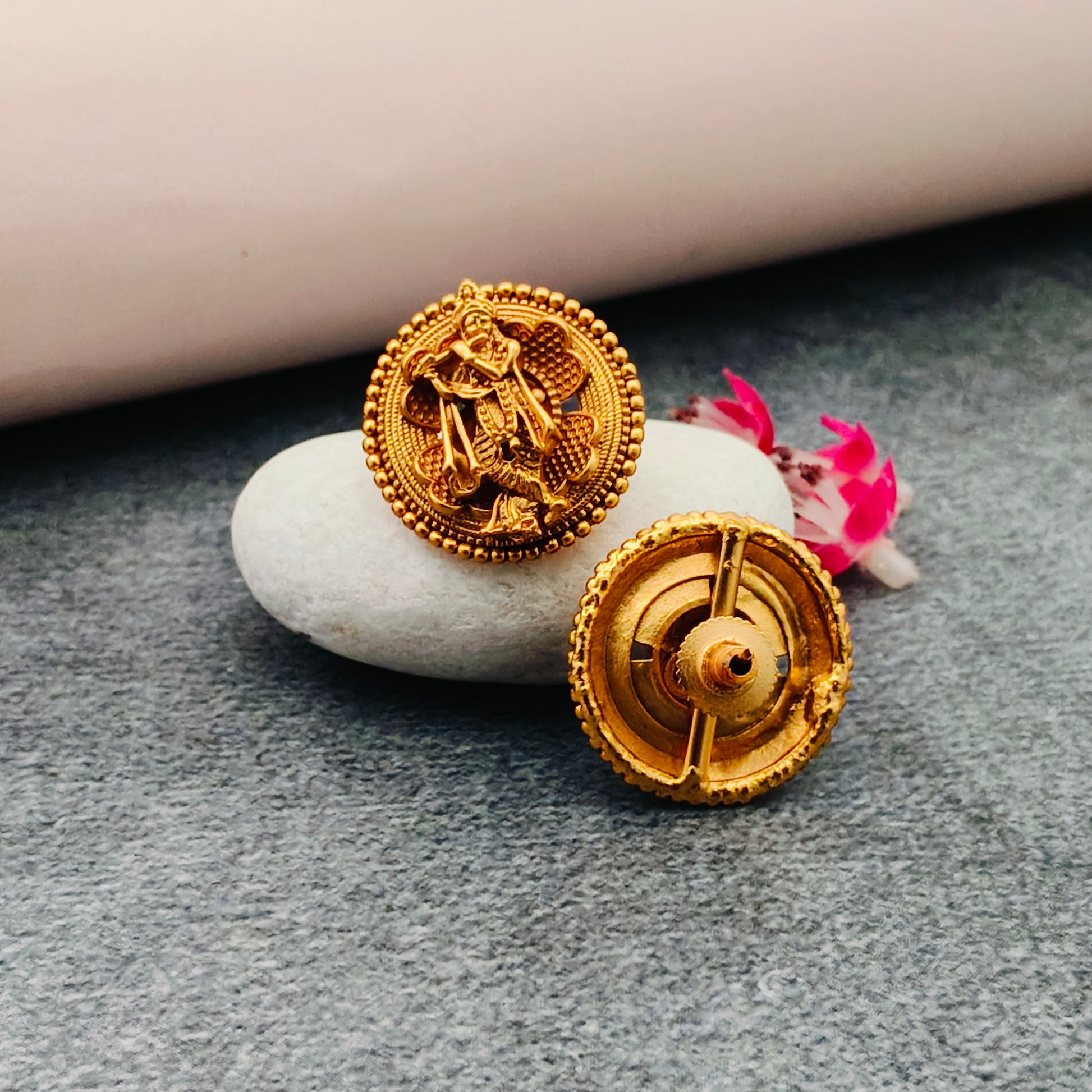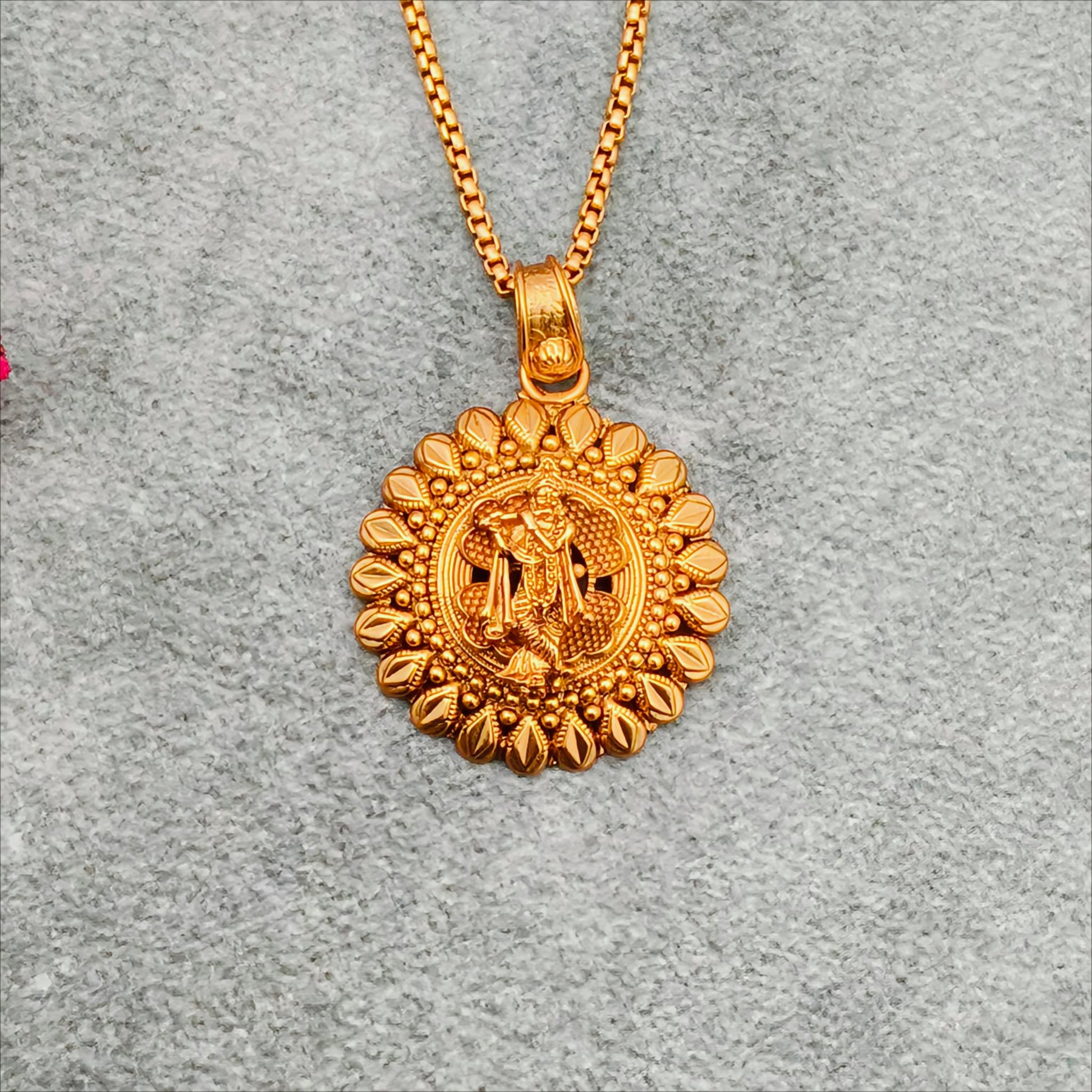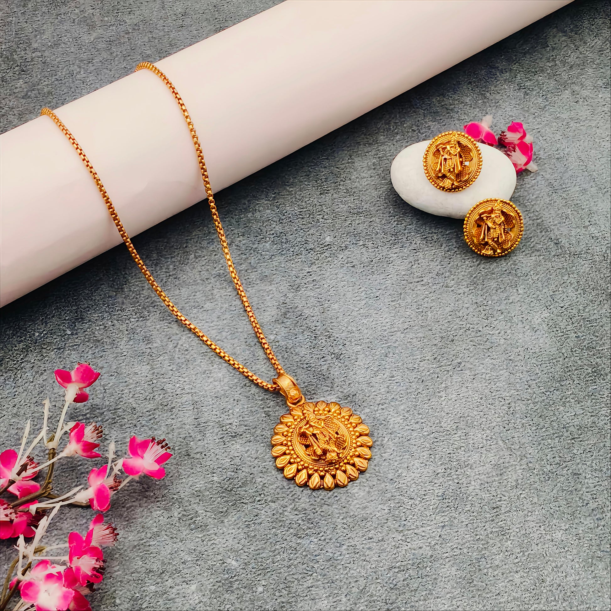 This set includes a vintage golden locket adorned with a Radha Krishna centerpiece on a mesh chain.