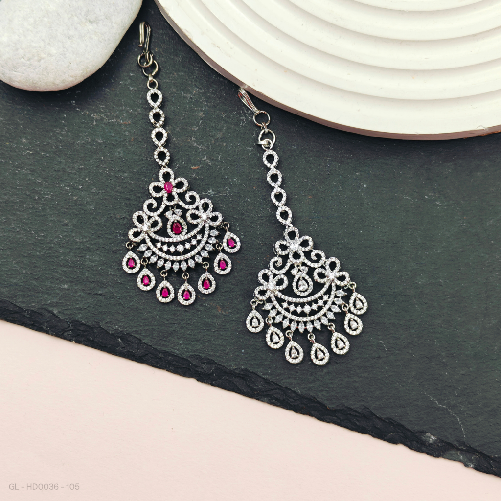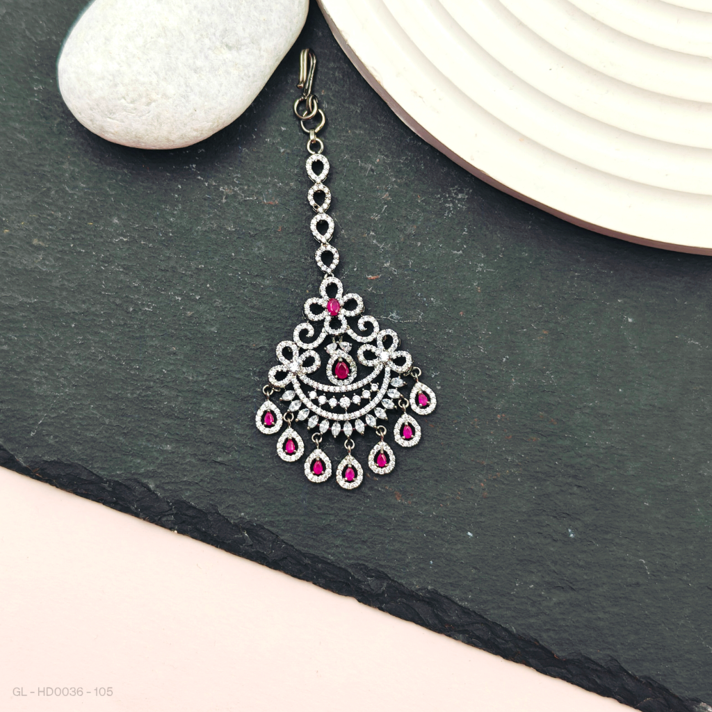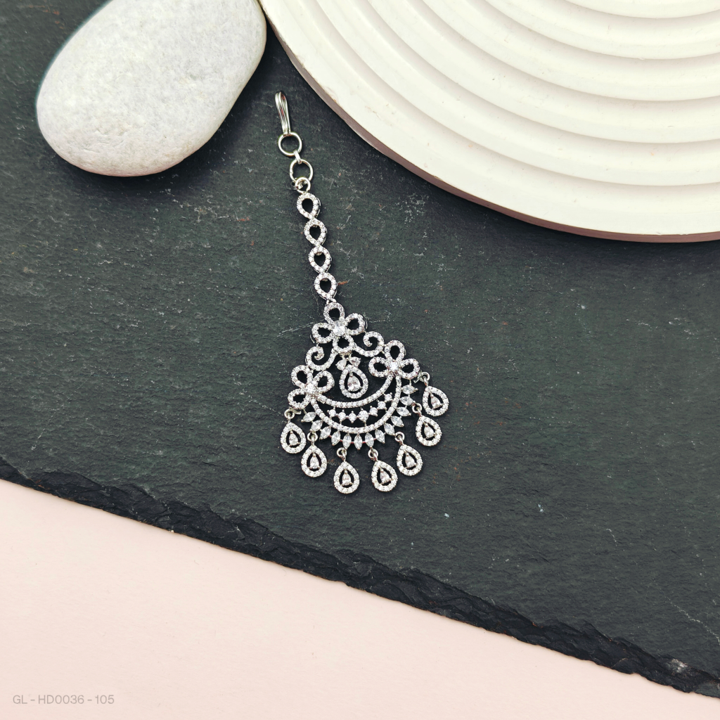 - The Tikka Head Accessory features a carefully crafted design, incorporating kemp stones, pearls, and a gold finish.