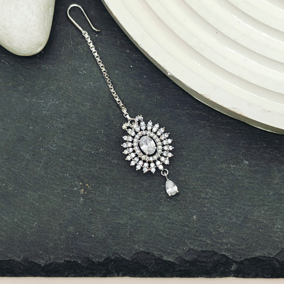 Silver finish AD Stone -Tikka / Nethichutti