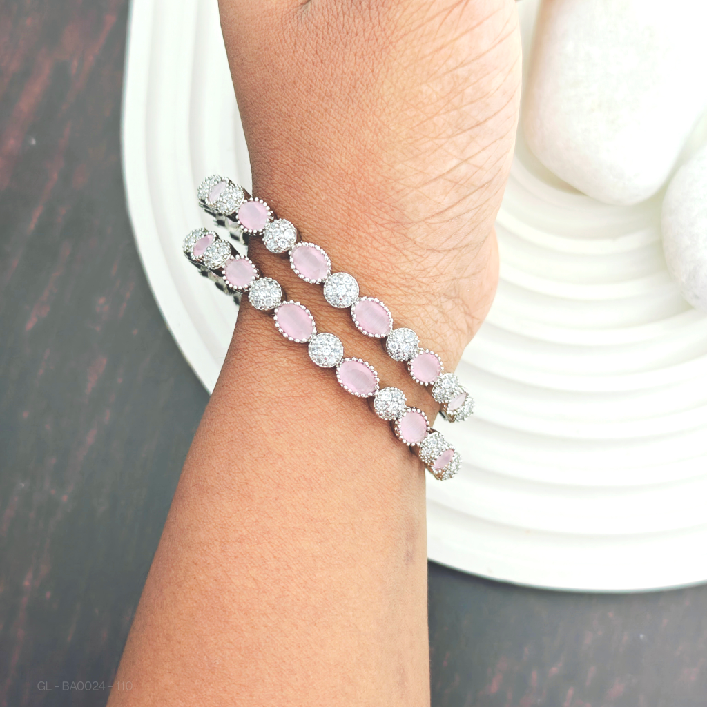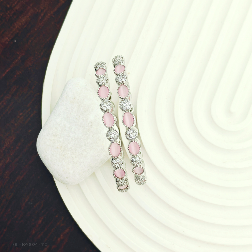 - Enhance your style with our 2 Pc set AD Stone Trending Bangle Set - featuring a stunning silver finish and trendy design.